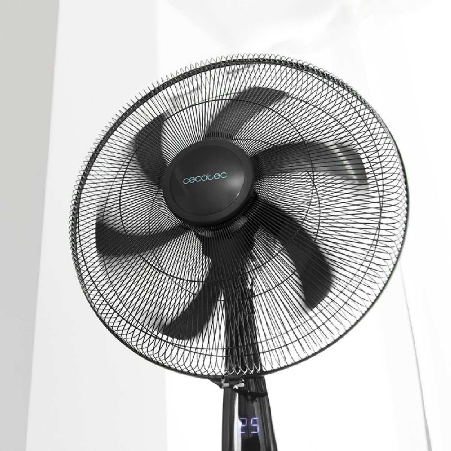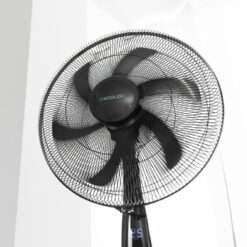 Ventilador de pie de 18 pulgadas (45 cm) y 6 aspas, posee motor de cobre y cuenta con 3 velocidades. Oscilación de 75º y altura regulable de 20 cm. Temporizador, mando a distancia y pantalla LED. Gran estabilidad.