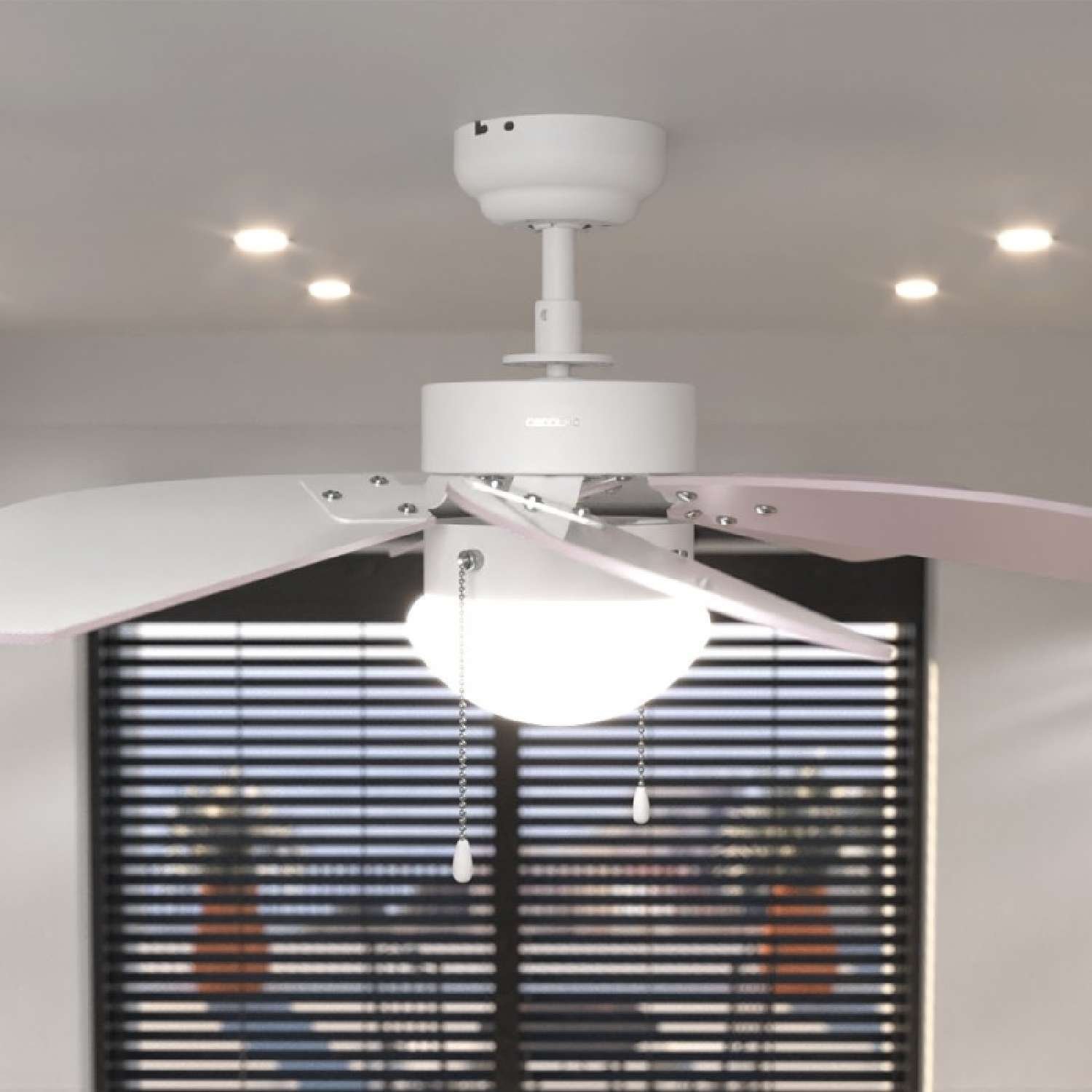 El ventilador integra una lámpara que lo convierte en un práctico equipo híbrido. Consigue luz y un ambiente perfecto en tu hogar de la forma más eficaz y asequible (bombilla no incluida).