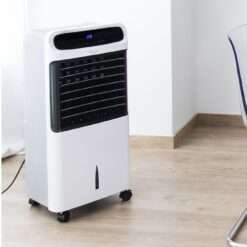 Climatizador evaporativo de frío y calor, caudal de aire hasta 500 m³/h con mando a distancia.