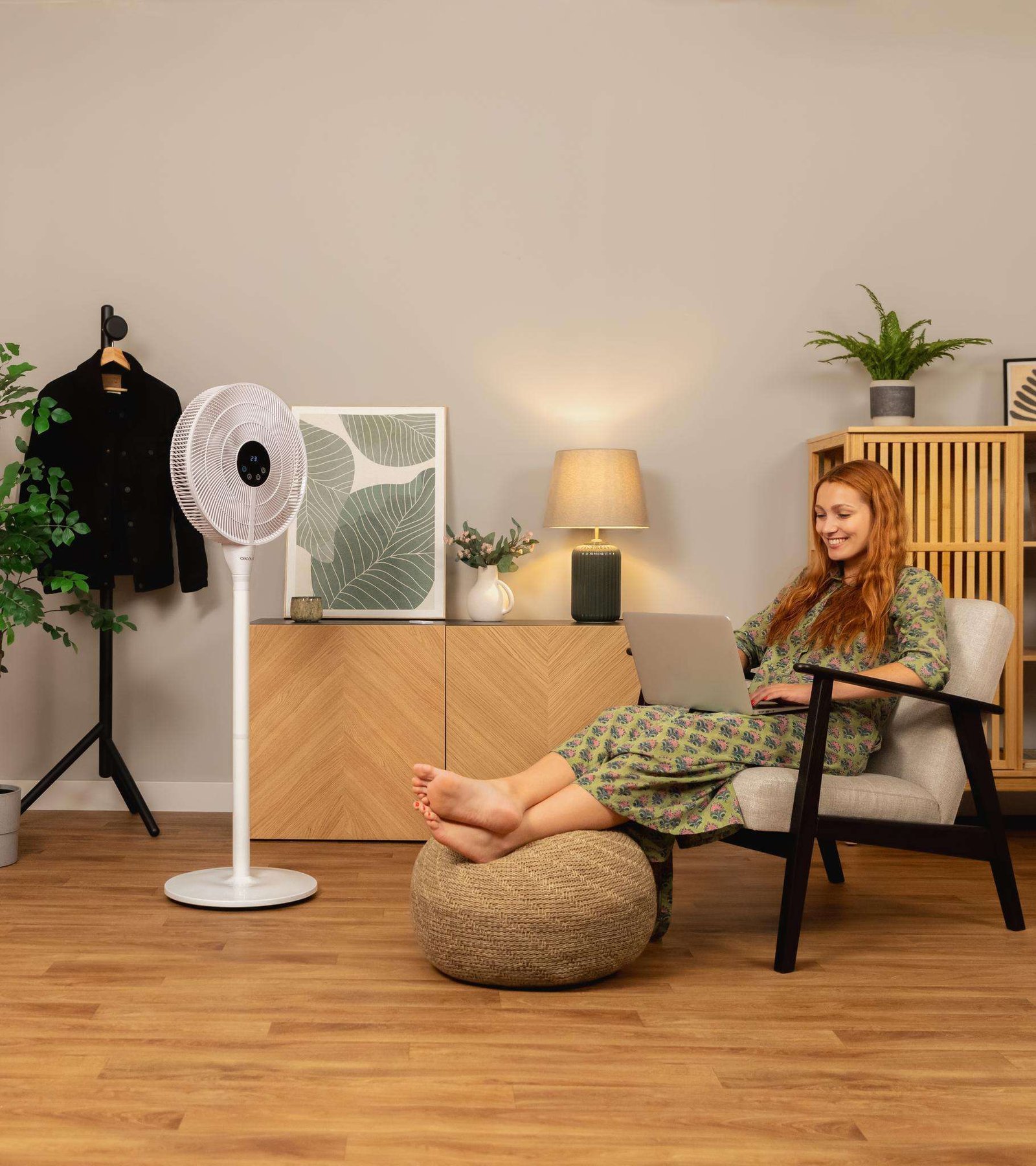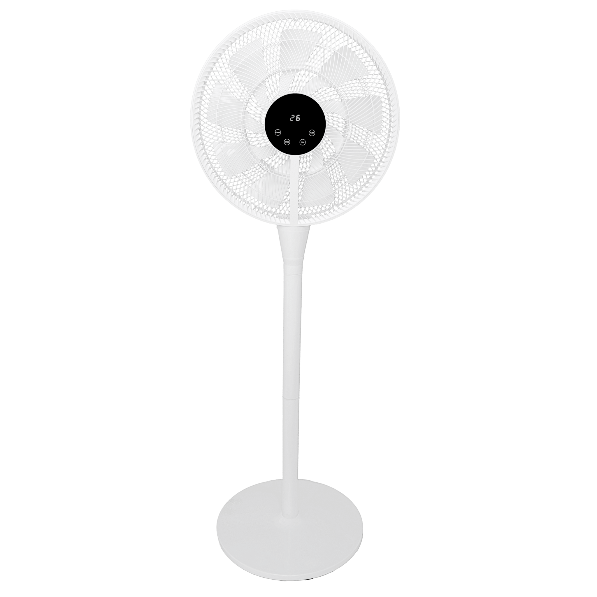 Ventilador de pie de 16″ con 25 W y motor DC, con mando a distancia, control táctil y pantalla, temporizado y oscilación.