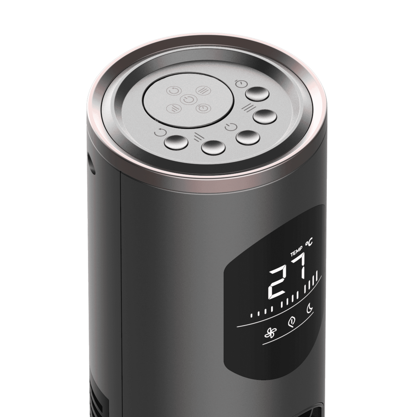 Ventilador de torre de 46 ” con 50 W y 3 velocidades, temporizador, oscilación, display y mando a distancia.
