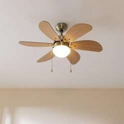 Ventilador de techo de 50 W y 36” con lámpara, 3 velocidades, 6 aspas reversibles, modo winter-summer y uso sencillo.