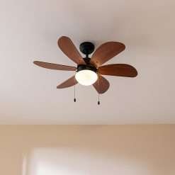 Ventilador de techo de 50 W y 36” con lámpara, 3 velocidades, 6 aspas reversibles, modo winter-summer y uso sencillo.