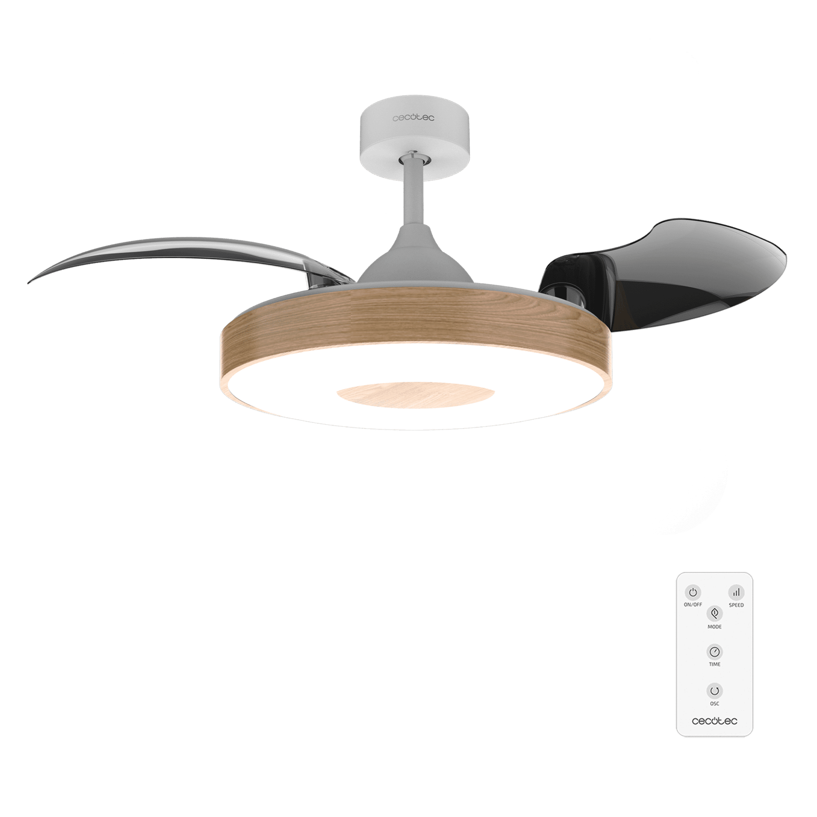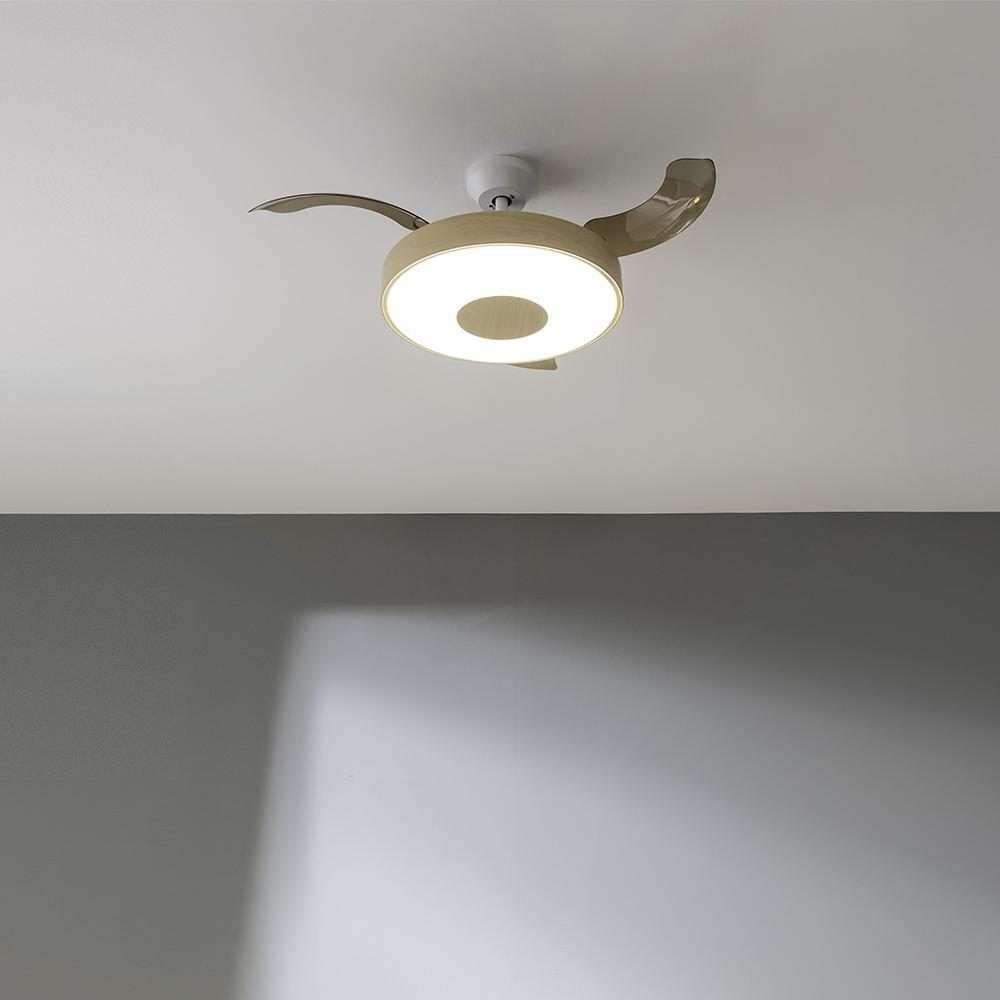 Ventilador de techo con aspas retráctiles de 31 W con motor DC y 42″ con iluminación LED, temporizador, mando a distancia y modo winter-summer.