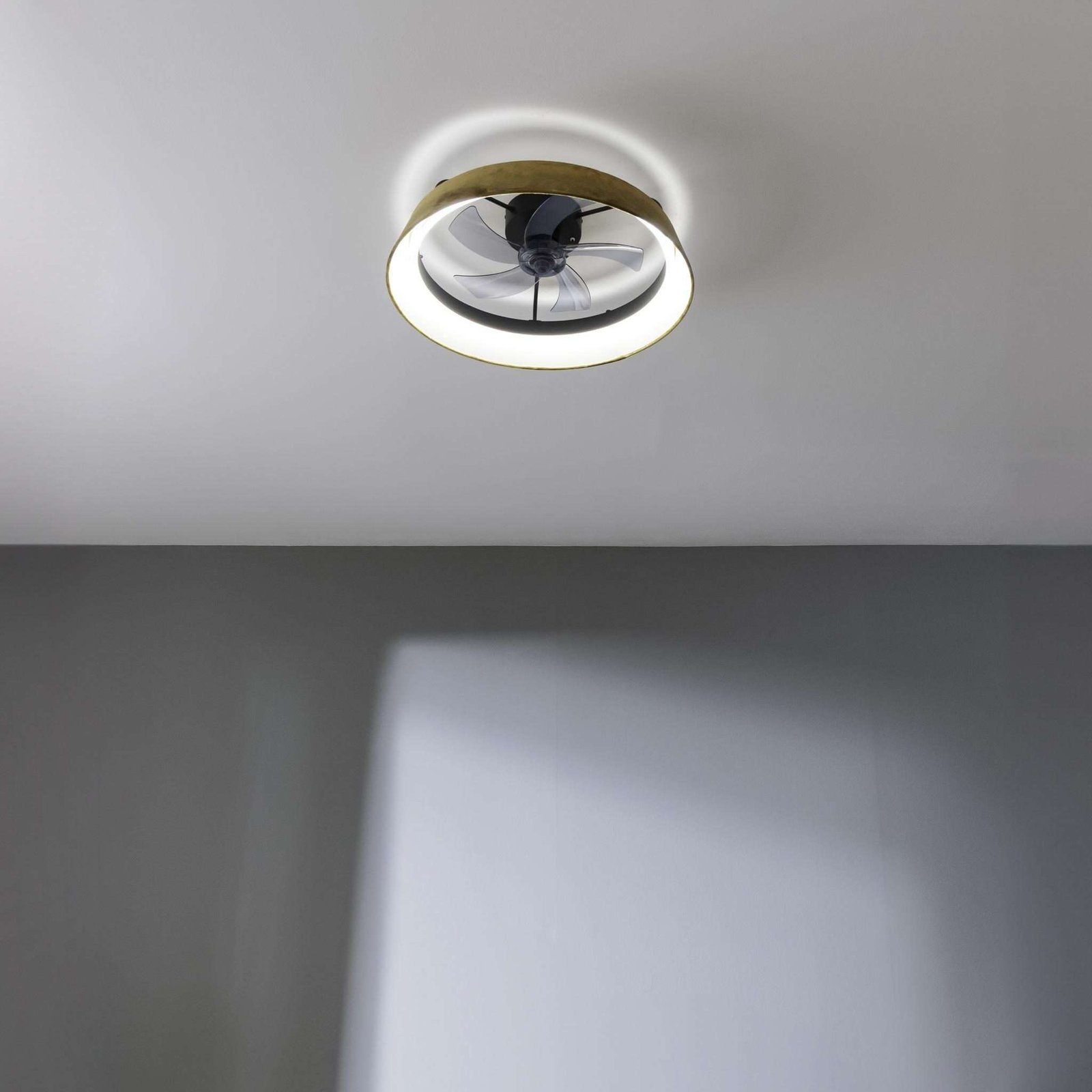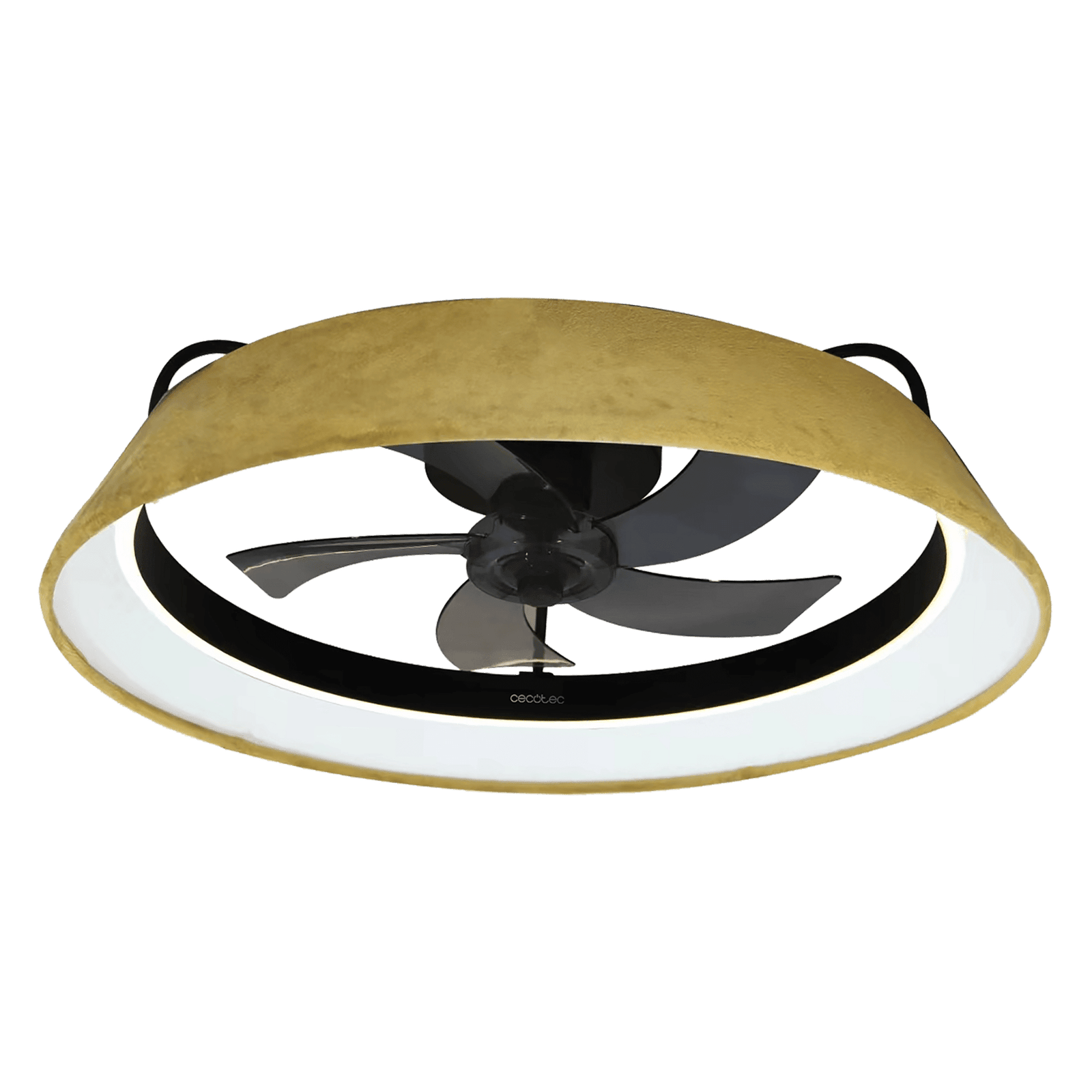 Ventilador de techo de diseño con un motor DC de 15W y luz LED de 45W , con 5 aspas de 17 pulgadas , control remoto, 3 velocidades, 3 tonalidades de luz disponibles, temporizador y modo winter/summer.