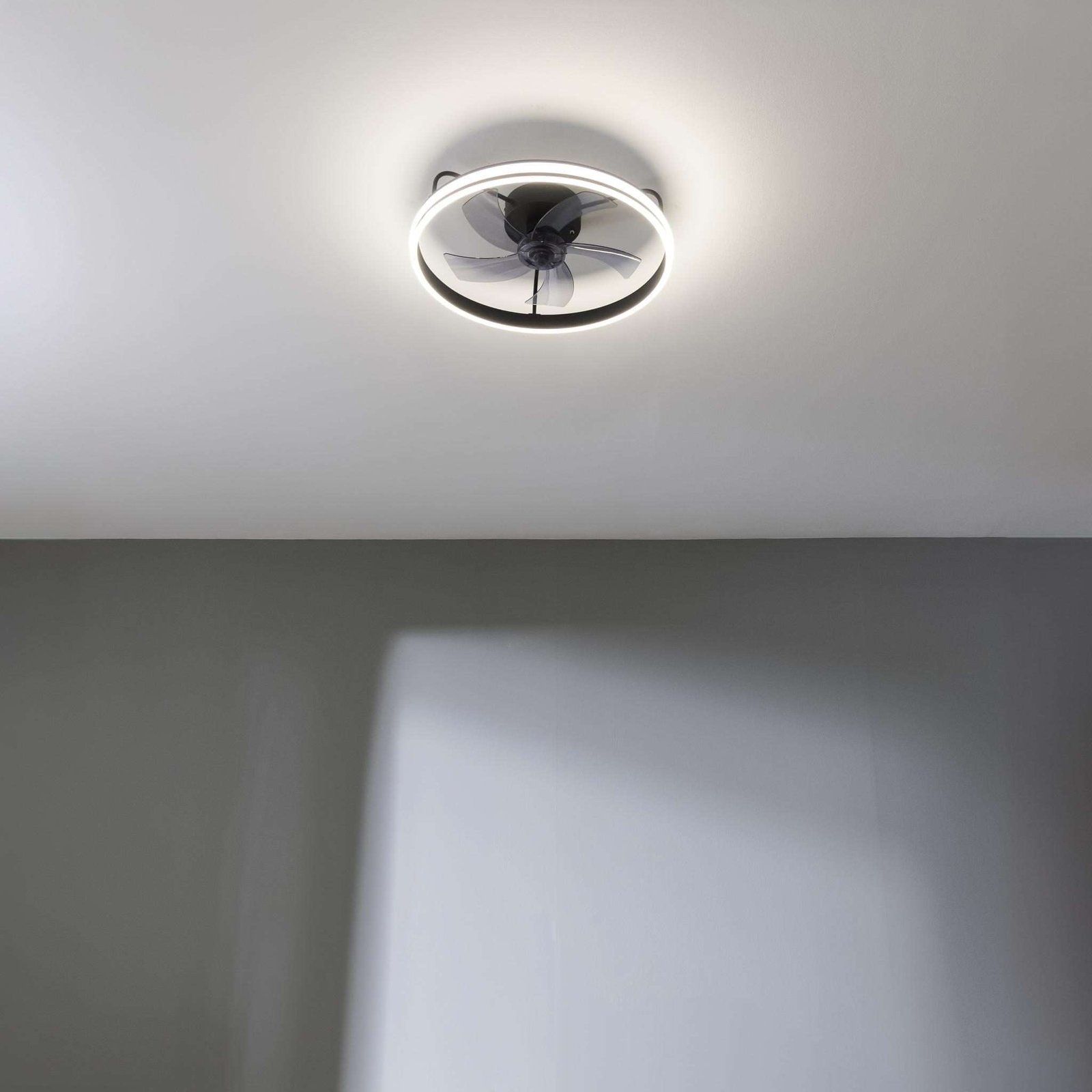 Ventilador de techo de diseño con motor DC , con una potencia de 15W y luz LED de 45W , con 5 aspas de 17 pulgadas , control remoto, 3 velocidades, 3 tonalidades de luz disponibles, temporizador y modo winter/summer.