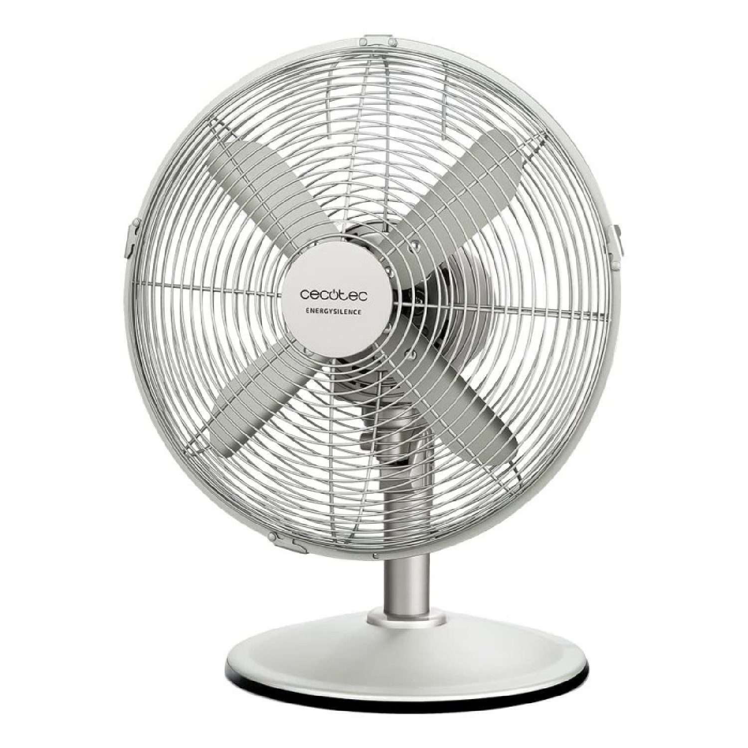 Ventilador de sobremesa con 40 W y acabado en acero, 12 pulgadas, 3 velocidades, oscilación, silencioso, altura ajustable, 4 aspas y máxima seguridad.