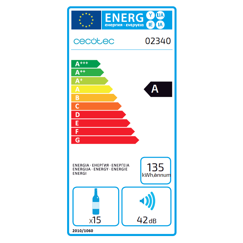 Temperatura ideal del vino: regulable entre 5-18 ºC.